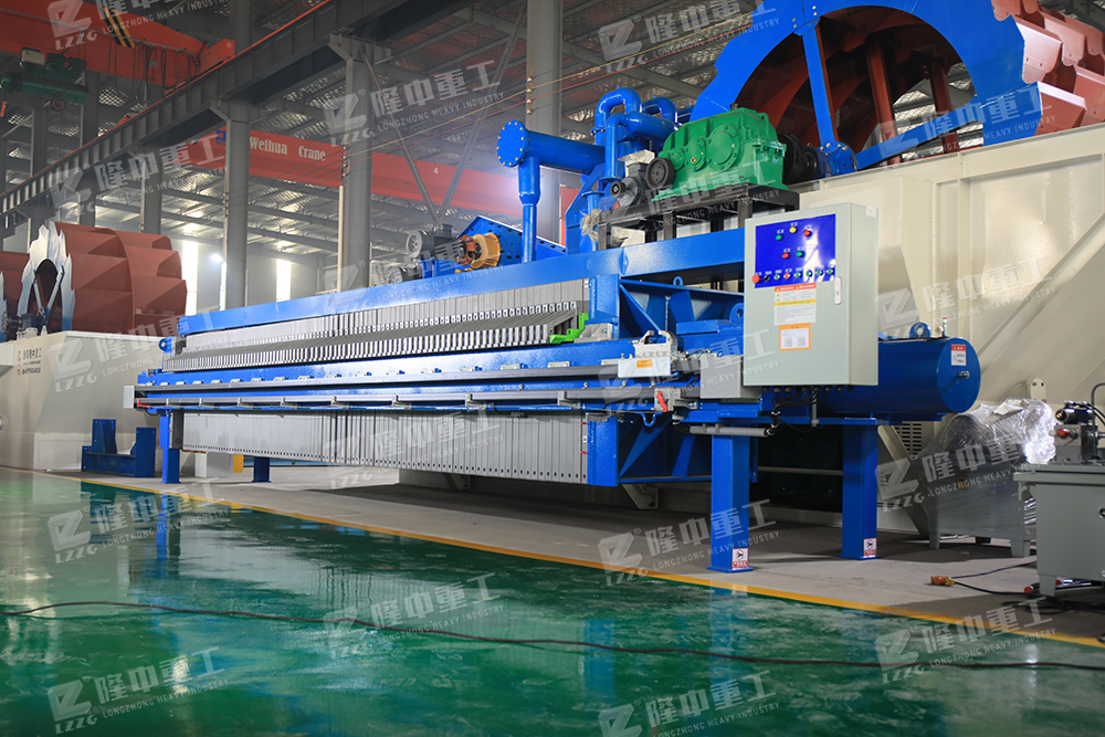 廂式壓濾機是利用濾布兩邊的壓力差,迫使物料中的J大部分水分透過濾布,流出機體外,而物料被阻隔在濾室內(nèi)形成濾餅,以達到過濾的目的。由于在過濾過程中濾布兩邊存在著較大的壓力差,提高了過濾速度降低了濾餅的含水率。